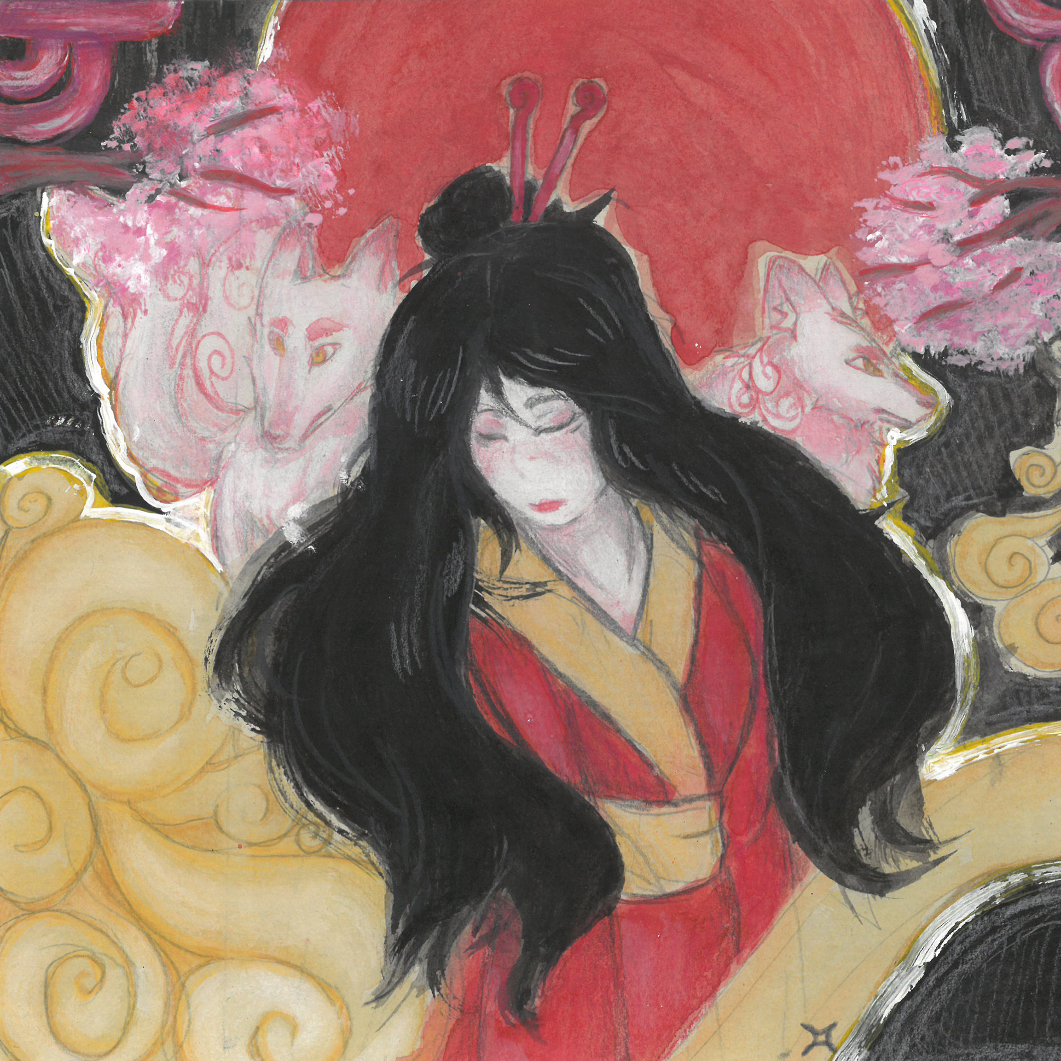 - “Kyuubi no kitsune (Raposa de nove caldas: criatura mítica do folclore japonês)” de Maria Clara Almeida – 15 anos (E.E. Dr. Fábio Barreto, Registro – SP)